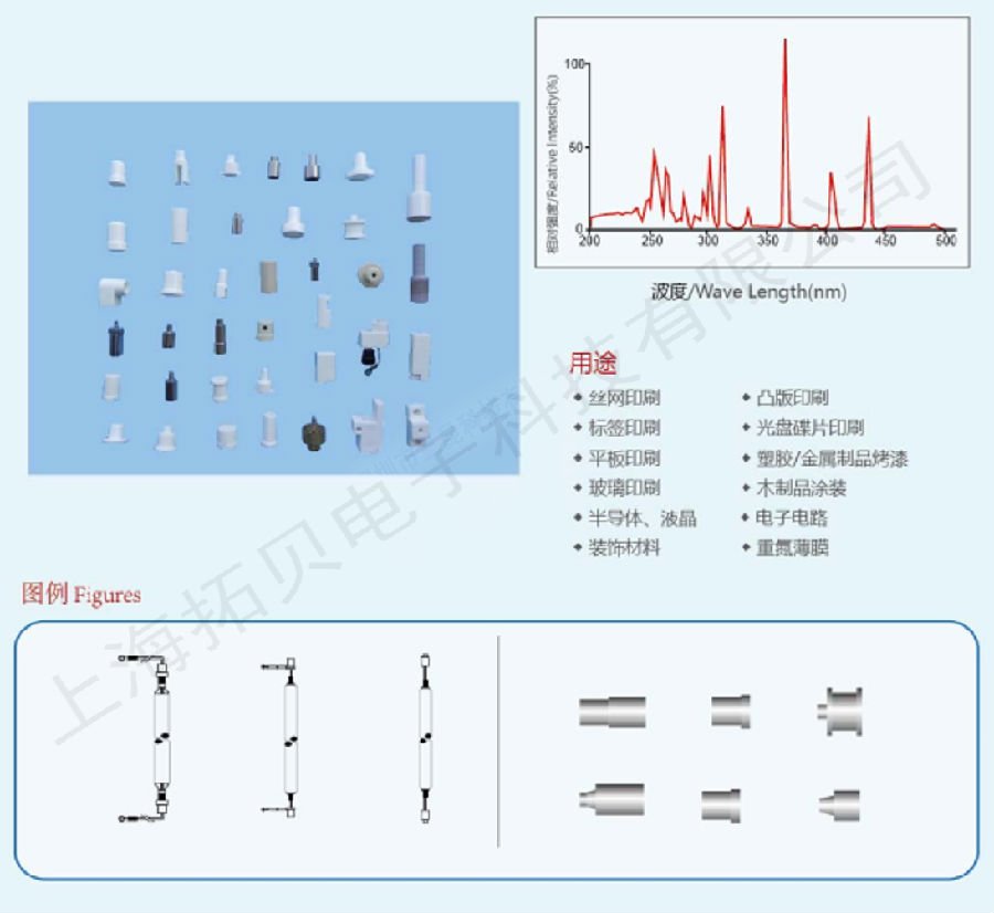 uv燈管)由高品質(zhì)的純石英管材制造而成,使紫外線能高程度及大量的穿透,其弧長度/發(fā)光長度可由5厘米至300厘米不等,常見功率為每厘米30W至200W,超大功率UV燈一般在每厘米200W或以上操作,該燈光譜有效范圍在350-450nm之間,主波峰為365nm,有700多個品種,功率由100w-25kw.UV燈的壽命一般指其能維持足夠的能量進行操作的時間,在此期間其能量逐漸衰減直至低于可接受的范圍為止,一般情況標準的UV燈能放射足夠的UV能量達800小時.UV固化廣泛用于竹木地板、家具、裝飾材料、印刷、印鐵制罐、塑膠涂裝、標牌、電路板、光盤等行業(yè);也是半導(dǎo)體、電子元件、液晶等粘接固化的理想光源.
