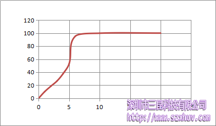 從圖中我們可以看出,固化并非是勻速的,剛開始固化稍慢,大約5s的時候,反應速度加快,大概在7s左右時,固化完全。這可能是因為剛開始碳碳雙鍵在打開時需要吸收部分能量,而交聯過程相對較快。